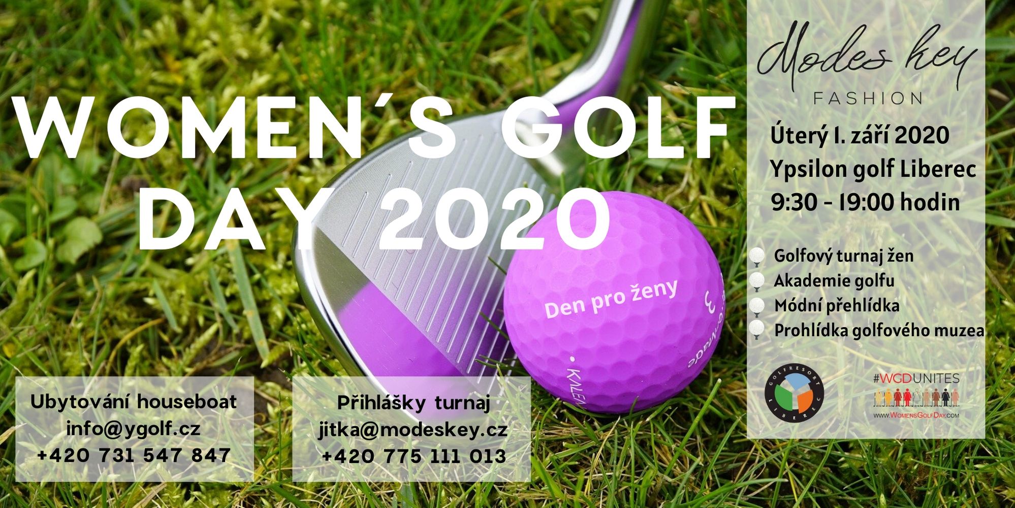 Den žen na golfu je opět připraven na liberecké Ypsilonce! YPSILON GOLF LIBEREC a MODE´S KEY připravili na 1.září celodenní program pro úplné golfové začátečnice i zkušené hráčky golfu. Pro všechny dámy, které se s golfem chtějí seznámit v nádherném prostředí jsou ve dvou časech (od 10.00 a od 13.00) připraveny dvě golfové školy s trenérkou golfu i veškerým potřebným vybavením zdarma. REGISTRACE účasti pro golfovou školu je na čísle recepce resortu 731 547 847. Pro hráčky golfu je od 10:00 hodin vypsán turnaj. Speciální Green fee pro turnaj činí 800,- Kč, startovné 400,- Kč. Součástí Dne žen na Ypsilonce je odpolední módní přehlídka libereckého MODE´S KEY a komentovaná prohlídka Golfového Muzea. Dámy, které budou chtít využít ubytování v romantických hausboatech na vodní ploše uprostřed golfového hřiště, je se mohou těšit na zvýhodnění 30% oproti pultovým cenám.